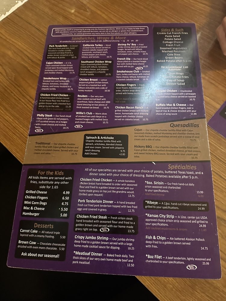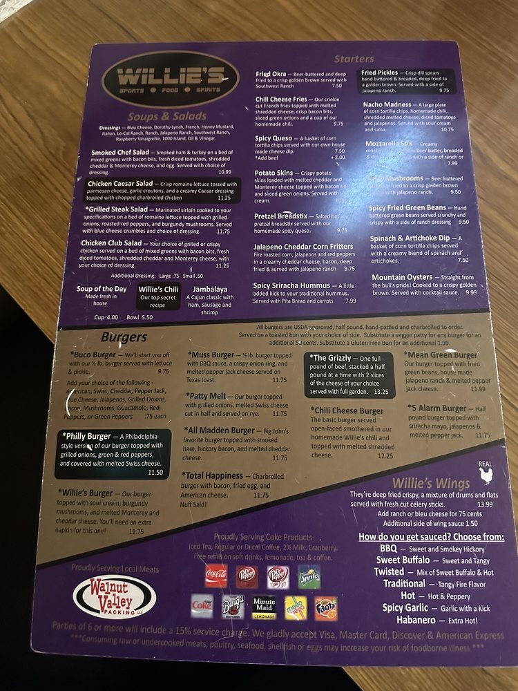 Willies, an American restaurant located at 151 N Main St in El Dorado, KS, offers a variety of options for its customers. The menu includes soups, salads, starters, and main dishes, all prepared with care and quality ingredients. Some highlighted items include the Chicken Caesar Salad, Chill Cheese Fries, Spicy Queso, and the Willie Burger. Patrons have praised the friendly service and welcoming atmosphere, making it a popular spot for locals and visitors alike. The establishment boasts a full bar, outdoor seating, and amenities such as TV, Wi-Fi, and a pool table for entertainment. While some may find the noise level a bit high, the overall experience at Willies is described as enjoyable and worth returning to. Don't miss out on trying their flavorful dishes and experiencing the lively ambiance at Willies.
